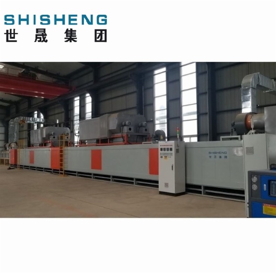 燃?xì)饩W(wǎng)帶固化爐主要由進(jìn)料段、燒結(jié)爐(預(yù)烘區(qū)、燒結(jié)區(qū))、出料段、強(qiáng)冷系統(tǒng)、熱風(fēng)發(fā)生爐、網(wǎng)帶傳動(dòng)機(jī)構(gòu)、電氣控制系統(tǒng)組成。